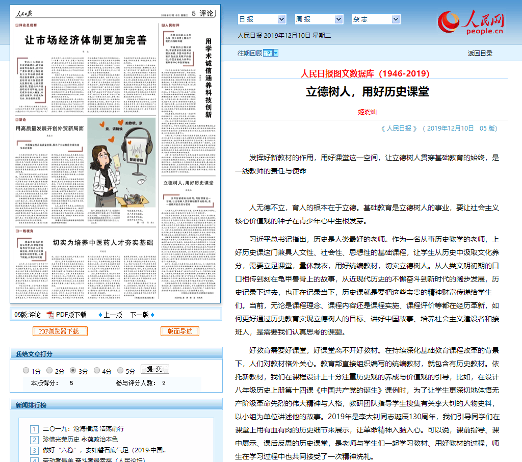 人民日报:立德树人,用好历史课堂
