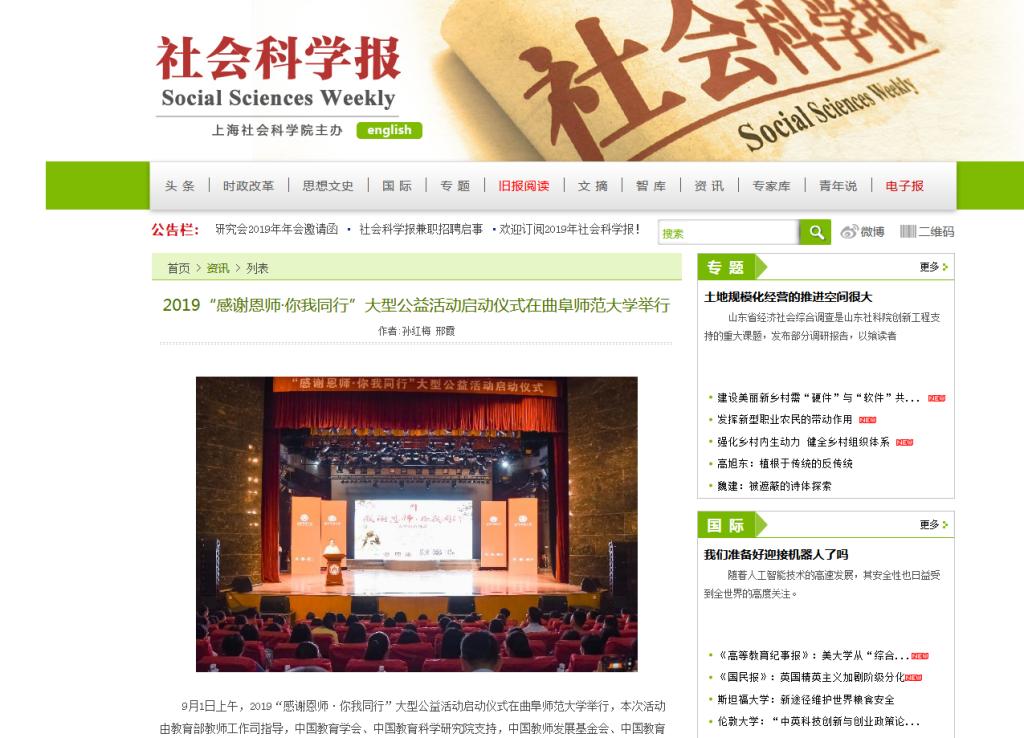 社会科学报:2019“感谢恩师·你我同行”大型公益活动启动仪式在亚搏集团官网(中国)官方网站举行