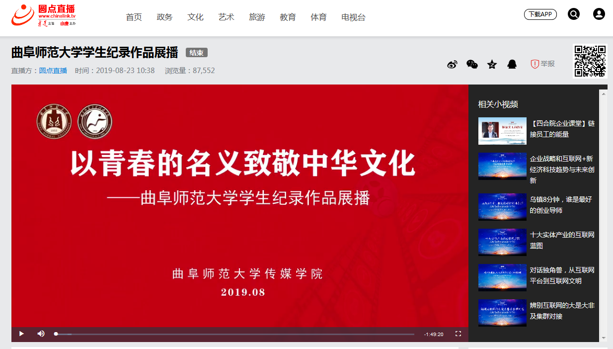 《以青春的名义致敬中华文化——亚搏集团官网(中国)官方网站学生纪录作品展播》链接地址:http://www.chinalink.tv/live/119709.html