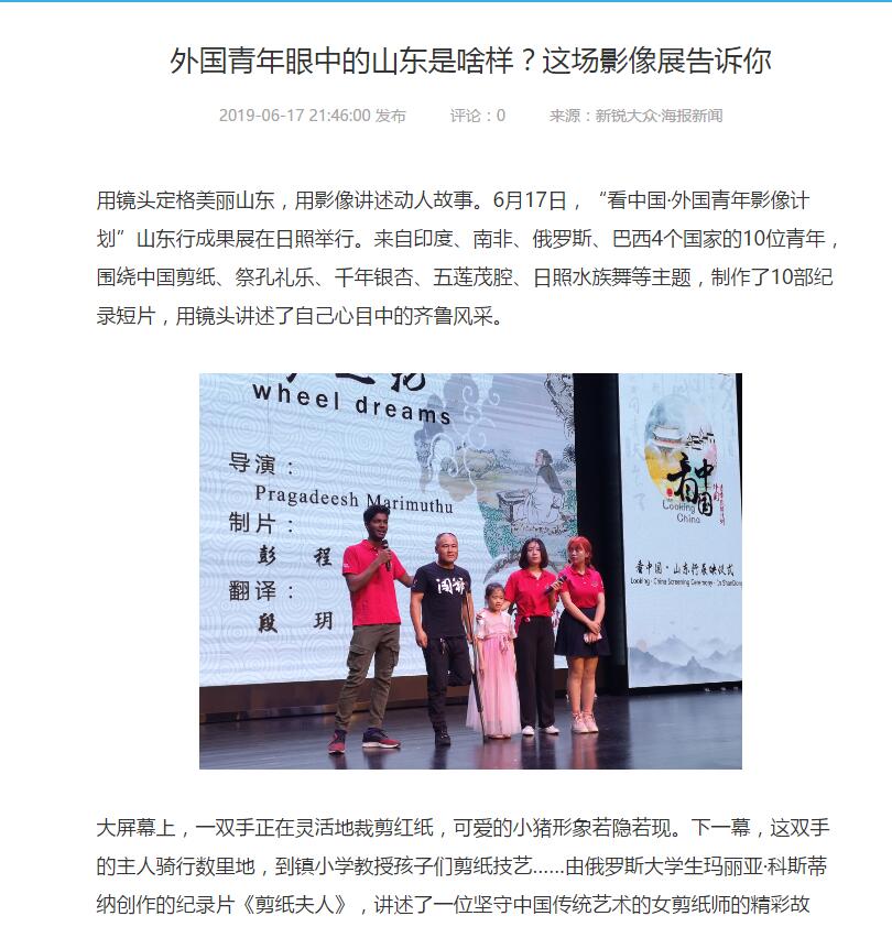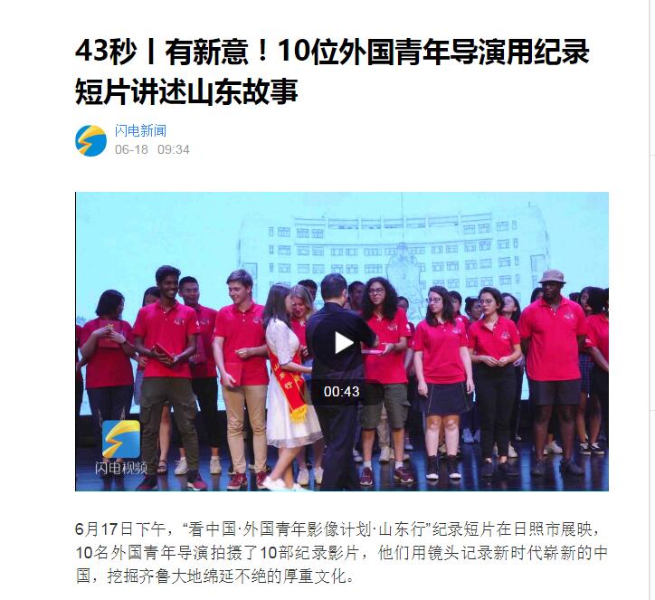 多家媒体关注“看中国•外国青年影像计划•山东行”活动