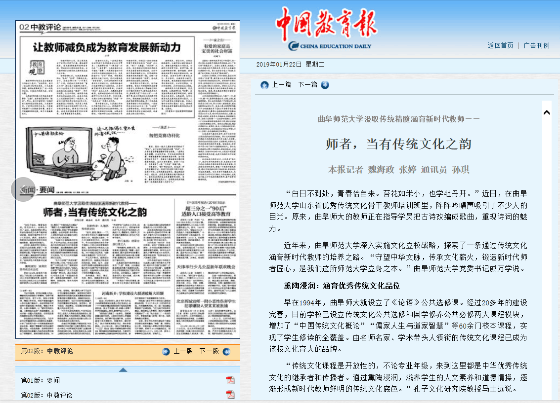 中国教育报:师者,当有传统文化之韵——亚搏集团官网(中国)官方网站汲取传统精髓涵育新时代教师