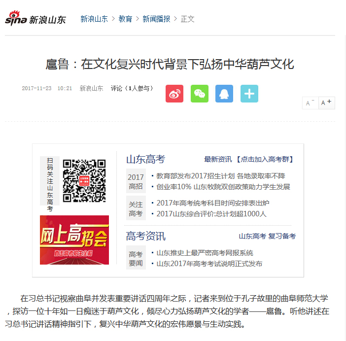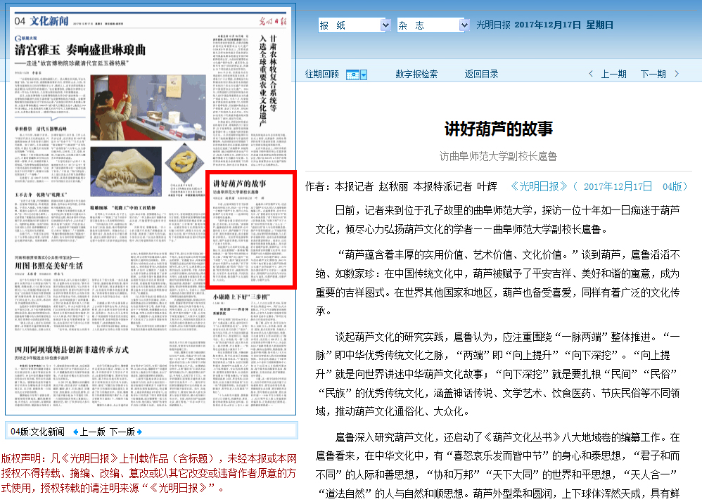 光明日报:讲好葫芦的故事——访亚搏集团官网(中国)官方网站副校长扈鲁