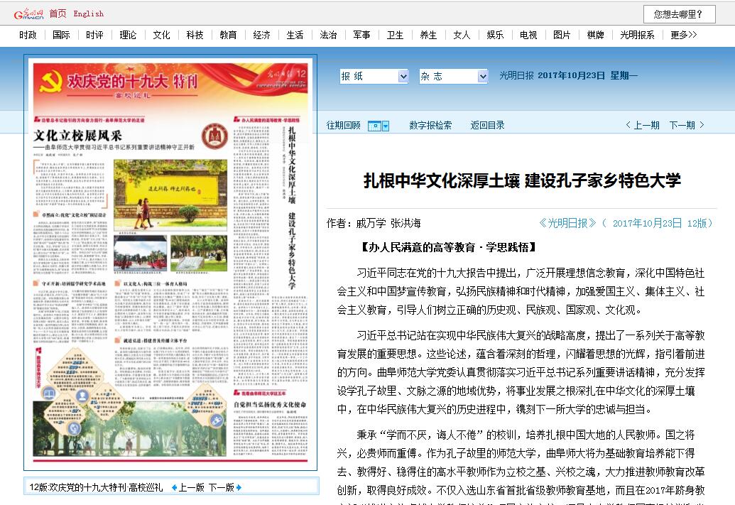 光明日报《扎根中华文化深厚土壤  建设孔子家乡特色大学》文章链接: