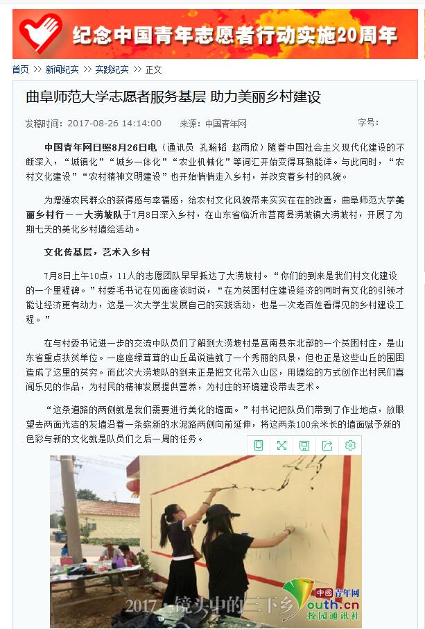 中国青年网:亚搏集团官网(中国)官方网站志愿者服务基层 助力美丽乡村建设