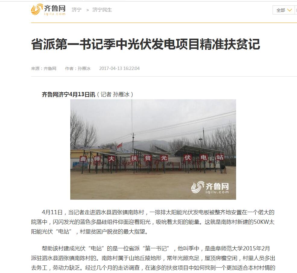 齐鲁网:省派第一书记季中光伏发电项目精准扶贫记