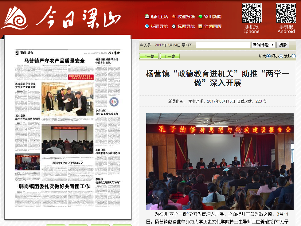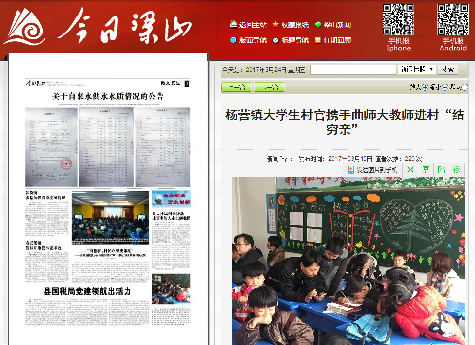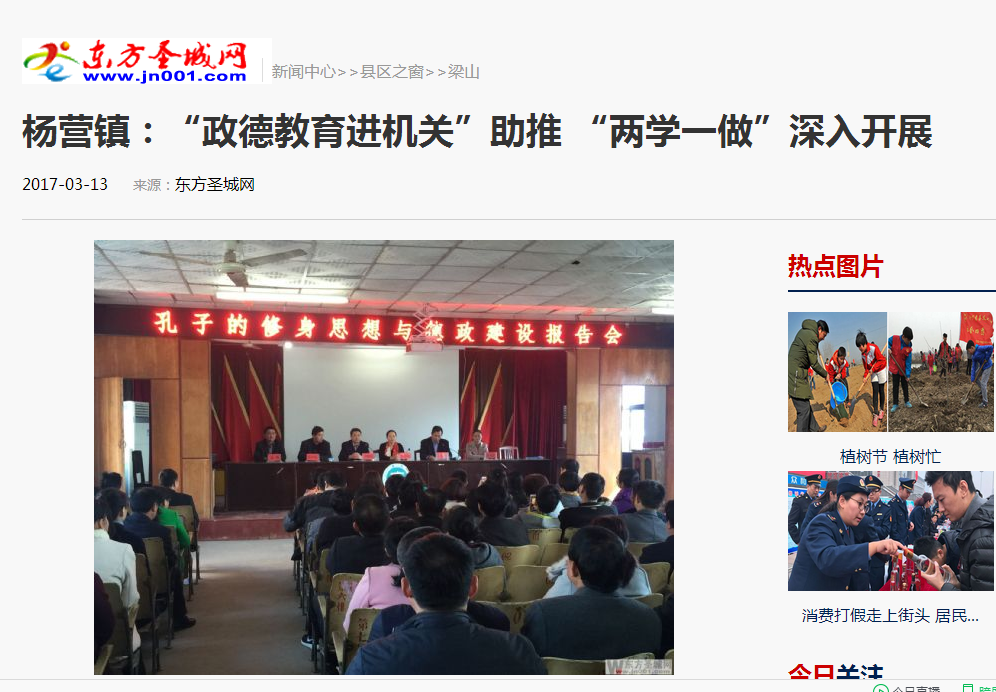 为庆祝“三八丽人节”,历史文化学院工会在院党委的领导支持下,组织全院女教工到济宁市梁山县杨营镇,给机关干部宣讲廉政文化,和杨营镇中心小学贫困家庭儿童结对爱心帮扶,度过了一个不同寻常的节日。该活动被多家媒体宣传报道,以下为部分媒体报道统计: