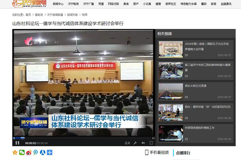 山东新闻联播:儒学与当代诚信体系建设学术研讨会召开
