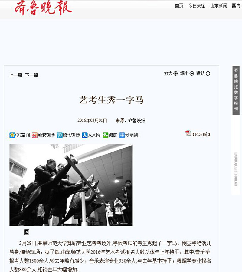 齐鲁晚报: 亚搏集团官网(中国)官方网站艺考生秀一字马