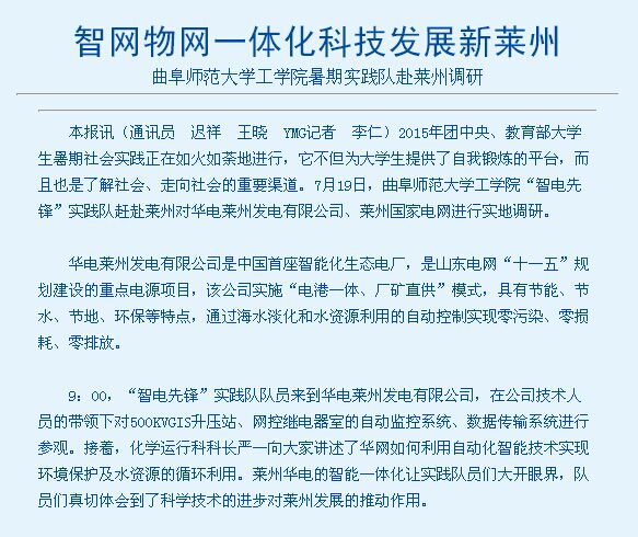 烟台日报链接:曲师大实践队调研智网物网一体化科技发展新莱州