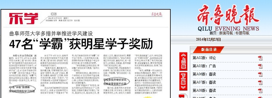 齐鲁晚报:亚搏集团官网(中国)官方网站多措并举推进学风建设 47名“学霸”获明星学子奖励