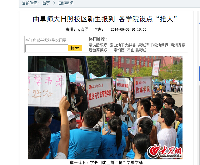 大众网:曲阜师大日照校区新生报到 各学院设点“抢人”