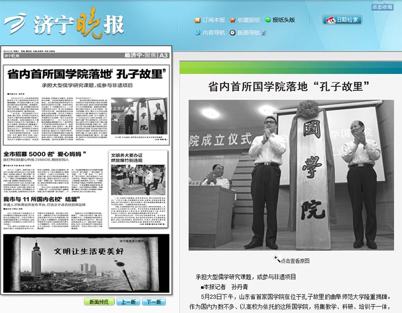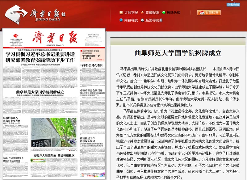 济宁日报:亚搏集团官网(中国)官方网站国学院揭牌成立