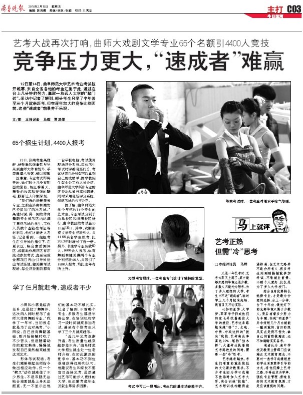 齐鲁晚报:艺考大战揭幕 各省考生齐聚曲师大