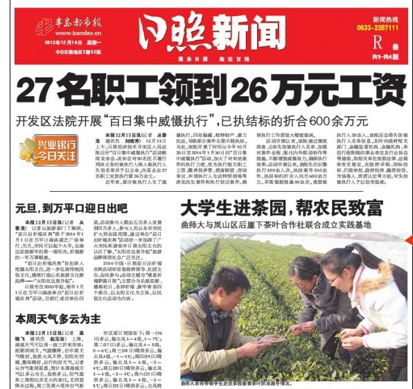 半岛都市报:曲师大与岚山区后崖下茶叶合作社联合成立实践基地