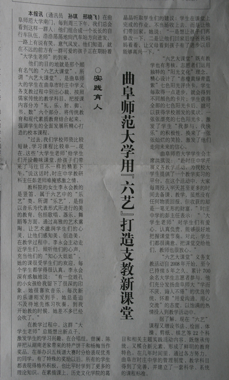 山东教育报:亚搏集团官网(中国)官方网站用「六艺」打造支教新课堂