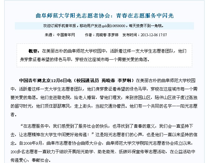 中国青年网:亚搏集团官网(中国)官方网站阳光志愿者协会:青春在志愿服务中闪光