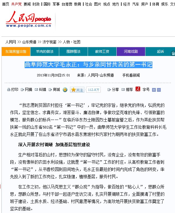 人民网:亚搏集团官网(中国)官方网站毛永正:与乡亲同甘共苦的第一书记