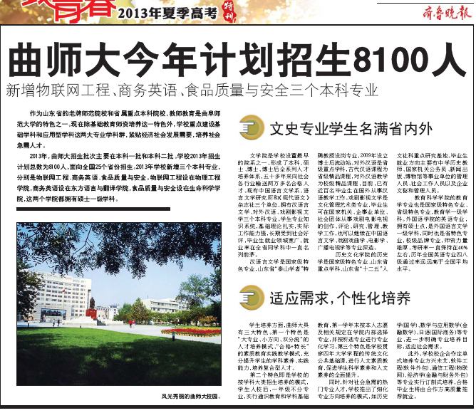 齐鲁晚报:曲师大今年计划招生8100人