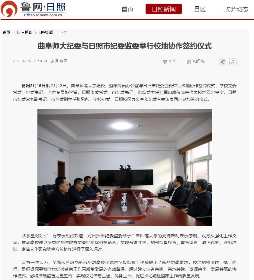 【鲁网】曲阜师大纪委与日照市纪委监委举行校地协作签约仪式