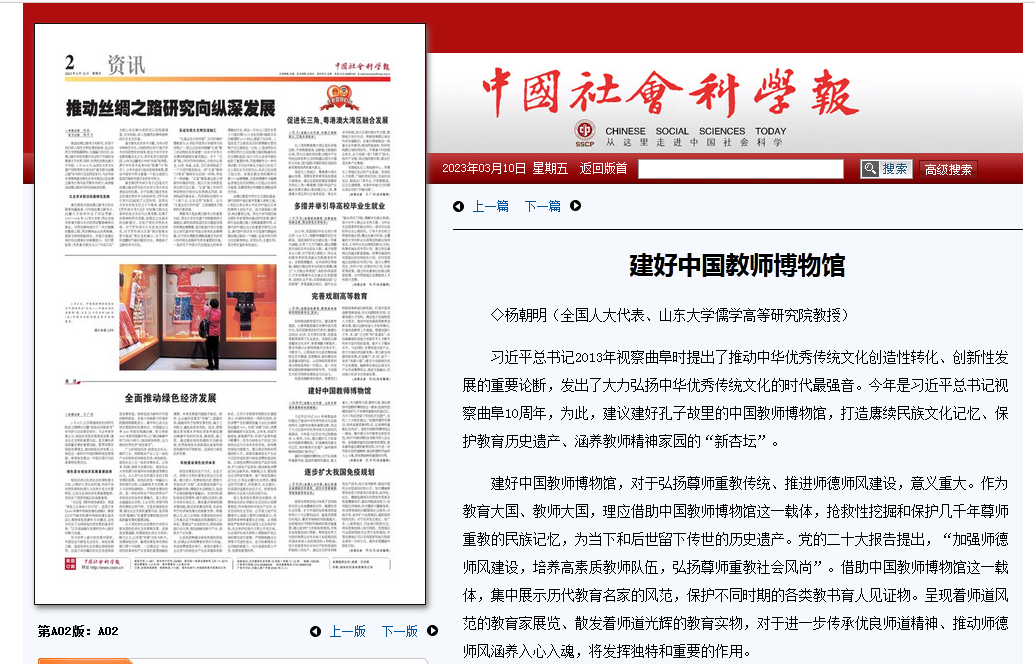 【中国社会科学报】全国人大代表杨朝明:建好教师博物馆