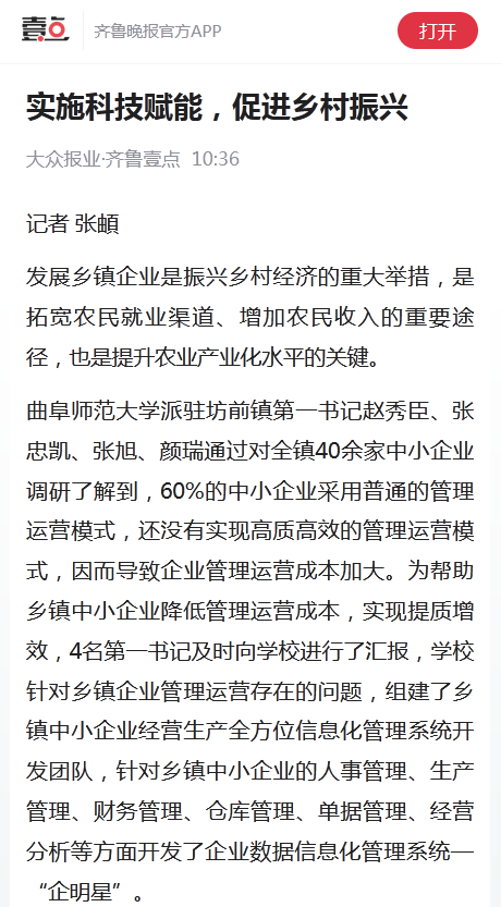 【齐鲁壹点】实施科技赋能,促进乡村振兴