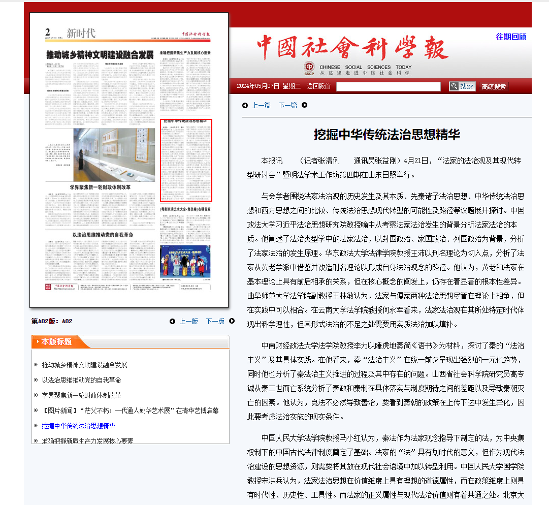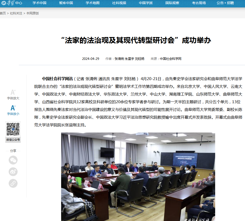 【中国社会科学报】“法家的法治观及其现代转型研讨会”成功举办