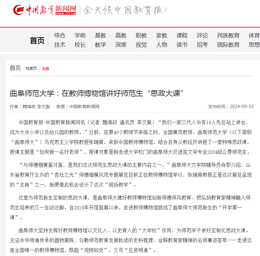 【中国教育新闻网】亚搏集团官网(中国)官方网站:在教师博物馆讲好师范生“思政大课”