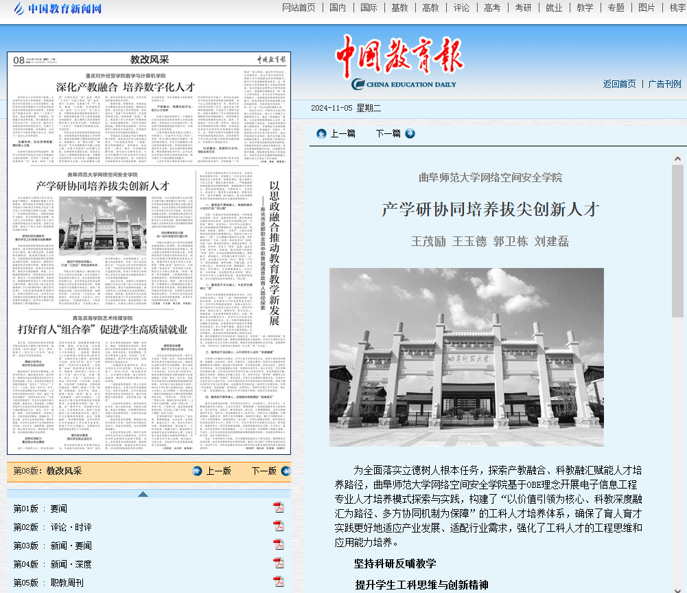 【中国教育报】亚搏集团官网(中国)官方网站网络空间安全学院:产学研协同培养拔尖创新人才