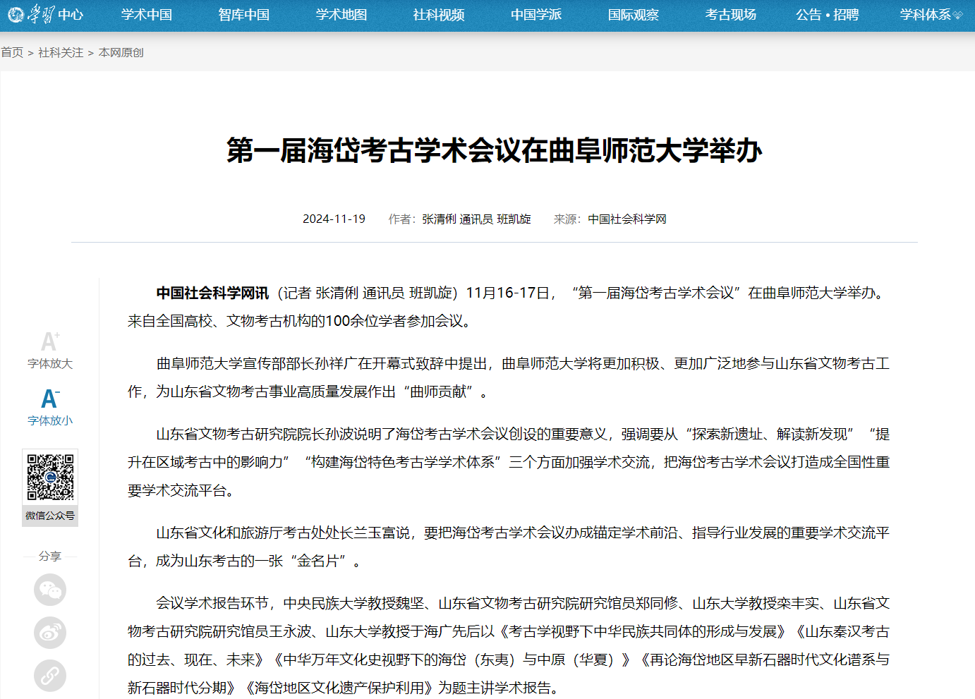 【中国社会科学网】第一届海岱考古学术会议在亚搏集团官网(中国)官方网站举办