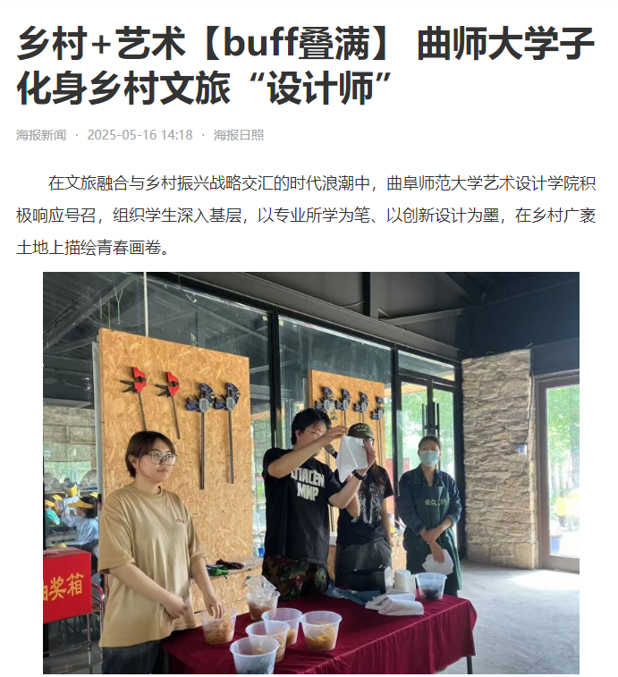 在山东省济宁市泗水等闲谷艺术粮仓,大学生们化身乡村文旅“设计师”与“推广员”。在特产宣传领域,团队成员将泗水的自然风光、民俗文化巧妙融入海报设计,通过极具视觉冲击力的构图与色彩搭配,打造出一系列独具地方特色的宣传作品;在新媒体运营方面,他们深入田间地头取景拍摄,用镜头记录乡村魅力。