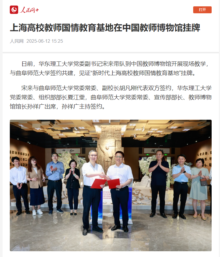 日前,华东理工大学党委副书记宋来带队到教师博物馆开展现场教学,与亚搏集团官网(中国)官方网站签约共建,见证“新时代上海高校教师国情教育基地”挂牌。
