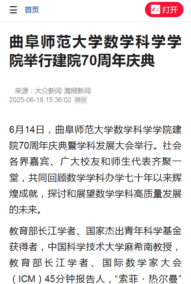 会上,张洪海在讲话中指出,数学学科作为建校基石之一,底蕴深厚。从建校初期获毛主席赞扬的“公社数学”,到服务国家建设荣获国家科技进步特等奖的运筹学“两法”,众多学术大家在此传道授业,奠定了坚实根基。张洪海强调,数学学科实现了从专修科到完备人才培养体系的跨越,稳居ESI全球前1%,为学校和山东省数学及相关学科发展作出卓越贡献,并培养出以郭雷院士为代表的大批精英人才,广受赞誉。张洪海要求数学学科立足现实、展望未来:一要聚焦立德树人,在“教育强国、曲师何为”的时代答卷中展现“数学作为”;二要勇担创新使命,力争产出更多原创性、标志性成果,为破解关键科学难题贡献“数学方案”;三要擦亮学科品牌,为国家战略和区域高质量发展持续贡献“数学力量”。他号召全体师生、校友共同谱写曲园数学新的璀璨篇章。
