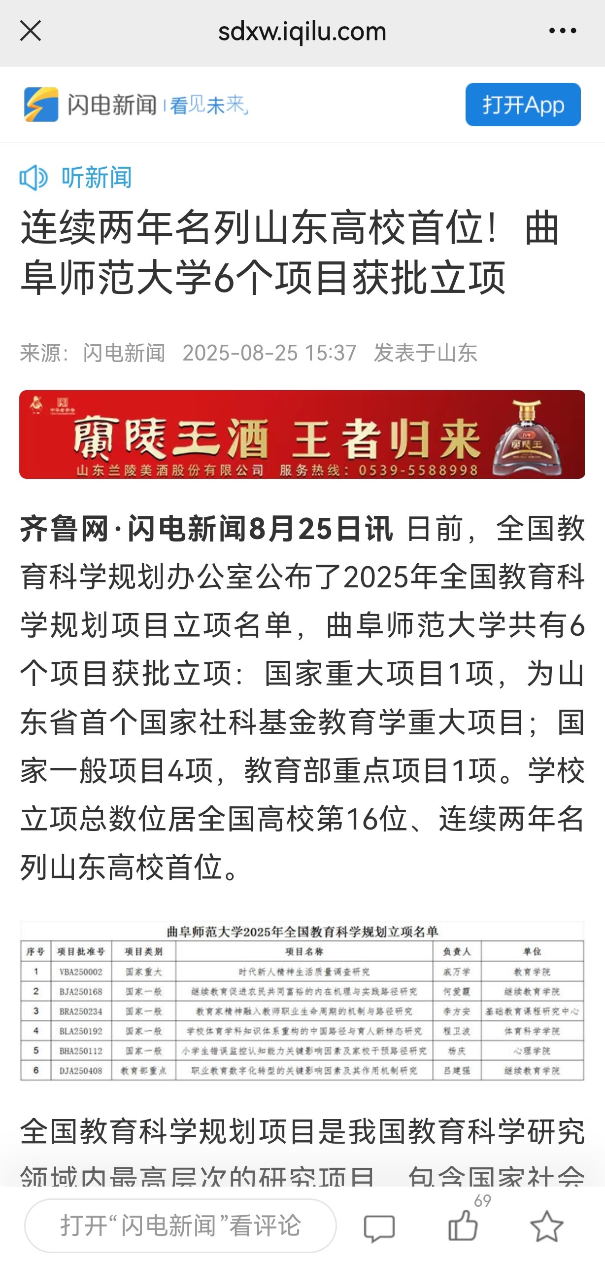 【闪电新闻】连续两年名列山东高校首位!亚搏集团官网(中国)官方网站6个项目获批立项