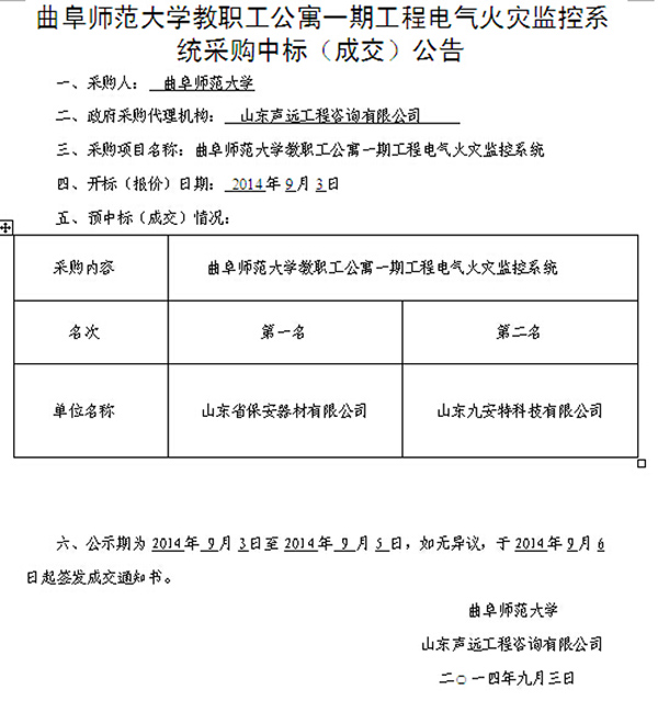 亚搏集团官网(中国)官方网站教职工公寓一期工程电气火灾监控系统采购中标(成交)公告