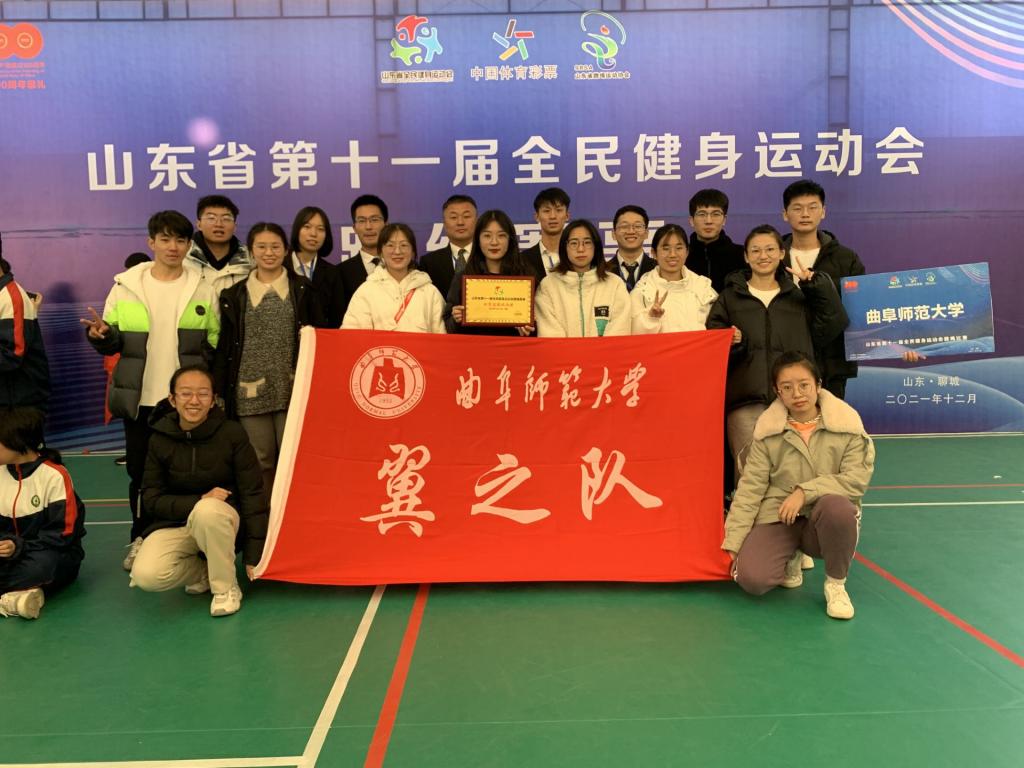 曲阜师大新闻中心讯 12月4日—5日,山东省第十一届全民健身运动会跳绳比赛在聊城市空体中心举行。亚搏集团官网(中国)官方网站派出由体育教学部副主任李思民任领队、伊士礼老师任教练员、14名运动员组成的队伍参加了此次比赛。队员们经过顽强拼搏,共斩获8项冠军、14项亚军、2项季军以及体育道德风尚奖等优异成绩。其中男子组4X30″单摇接力成绩为716次、3分钟单摇跳成绩为984次、30秒单摇跳成绩为198次;女子组3分钟单摇跳成绩为746次;女子组两人同步花样、混合组车轮跳等项目也取得了优异成绩。