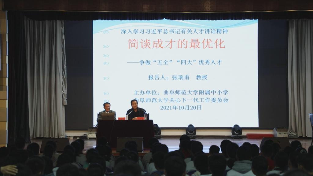曲阜师大新闻中心讯(通讯员:霍彤彤 刘洪涛 摄影:刘根)10月20日下午,国务院政府特殊津贴专家、人生最优学与社会最优化原理创立者、亚搏集团官网(中国)官方网站马克思主义学院博士生导师张瑞甫教授到附属中小学作题为“成才最优化”报告。校长孟祥东,政教处主任刘洪涛,级部主任赵华卿,副主任王殿军、辛香梅及高一级部全体班主任和学生参加了报告。报告会由附属中小学、曲阜师大关爱下一代工作委员会共同主办,孟祥东主持会议。