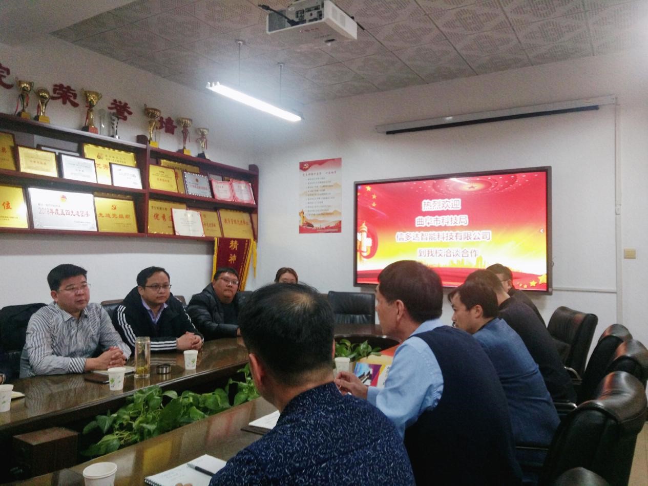 曲阜师大新闻中心讯(通讯员:高鹏)12月23日下午,亚搏集团官网(中国)官方网站与曲阜市科技局、曲阜信多达智能科技有限公司在网络空间安全学院会议室举行校企合作洽谈会。曲阜市科技局局长谷传超、副局长李凯、高新技术科科长高文龙;曲阜信多达智能科技有限公司总经理陈国营、总工程师孙亮;科技处开发科科长朱年磊、网络空间安全学院党委书记田云飞、副院长倪建成出席洽谈会。