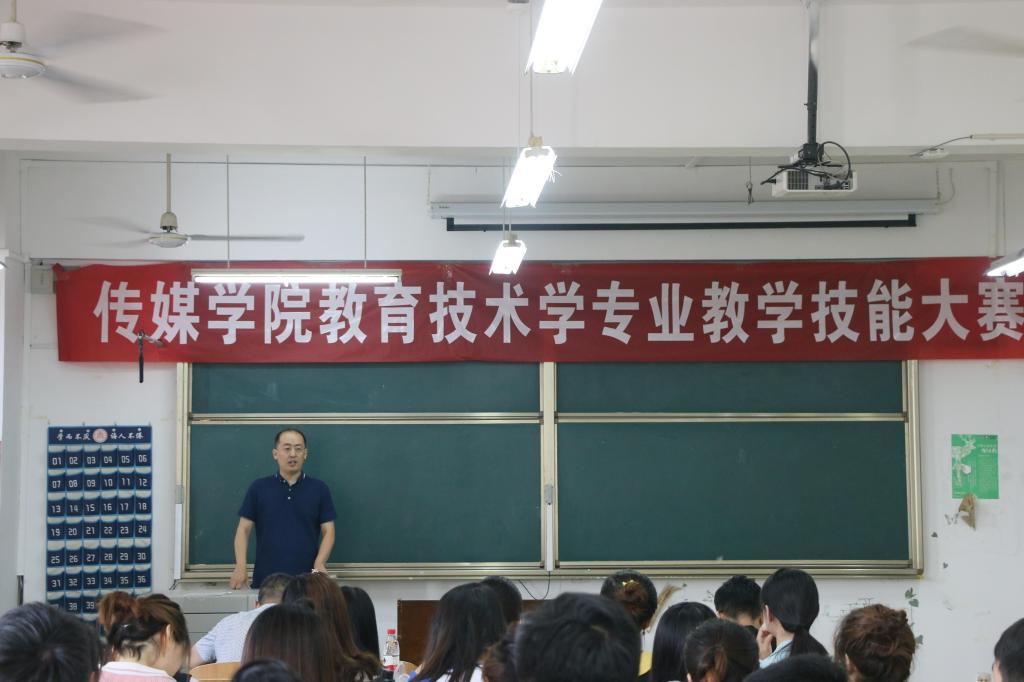 为提高学生教学技能,展示实习支教成果,7月10日,我校传媒学院举行教育技术学专业教学技能大赛,传媒学院副院长赵可云及相关专业老师担任本次比赛评委,31位教育技术专业学生参加了比赛,2016级教育技术专业全体同学现场观摩了比赛。