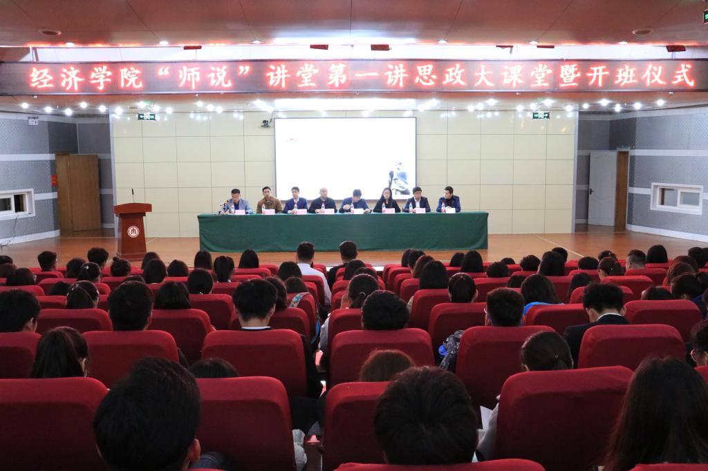 4月10日下午,经济学院“师说”讲堂第一讲思政大课堂暨开班仪式于图书馆报告厅拉开序幕。学生工作处、校团委、国际交流合作处、教务处等相关单位负责人出席了活动,学院任洲鸿教授担任思政大课堂第一讲主讲人,众多师生现场聆听了讲座。仪式由院学党委副书记胡一杰主持。