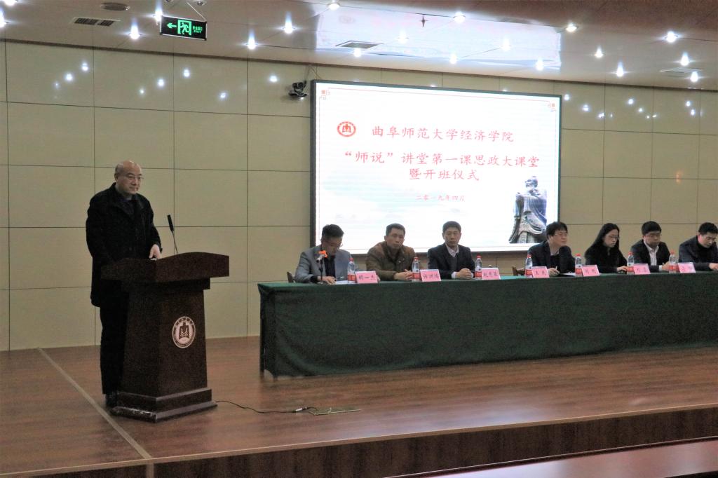 开班仪式上,学院党委书记王民致辞。王民表示,学院历来重视本科教育质量,严格贯彻落实“四零课堂”管理模式,提出了“雅思培训班”、“暑假小学期”、“寒假数学模型班”等一系列具有创造性的教学模式,在此基础上推出“师说”讲堂系列活动,旨在传扬曲师尊师重教的优良传统,提升本科教学的深度、挑战度,淘汰水课,打造金课。本次系列活动共分为五个板块:思政大课堂、项目式教学、社会活动驿站、留学分享会、经济前沿瞭哨。五个板块环环相扣,层层递增,通过校内外学者宣讲思政,提升青年学子道德修养;依托学院科研硬实力,积极推进项目式教学;组织参与社会实践活动,接触社会实事问题;鼓励留学教师分享海外学习生活经历,拓宽同学们的国际视野;解读经济前沿热点,通过经济现象透析社会发展的内在规律。