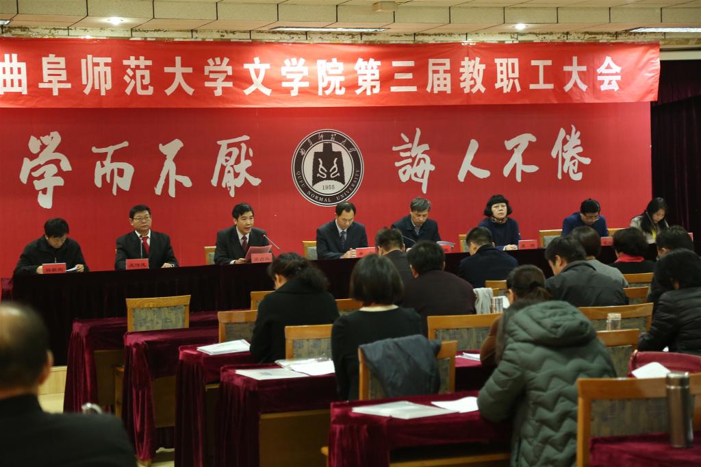 12月1日上午,文学院召开第三届教职工大会。副校长辛杰,工会主席王万民,文学院党委书记苏占兵、院长夏静、党委副书记王作茂以及特邀嘉宾出席大会并讲话,文学院全体教职工参加会议。