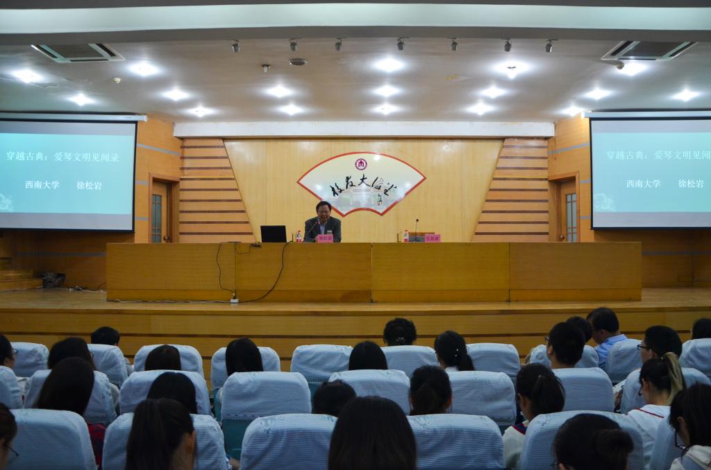 徐松岩教授以《穿越古典—爱琴文明实地考察见闻录》为题,以崭新的视角、渊博的学识和丰富的见闻,用诙谐幽默的语言向师生们讲述了西方爱琴文明的进程。徐松岩用200余张珍贵照片,图文并茂地生动再现了爱琴文明的文化遗存,共同分享了他实地考察的所见所闻,以及对西方古典文明的思考,大大增强了同学们学习世界史的热情。