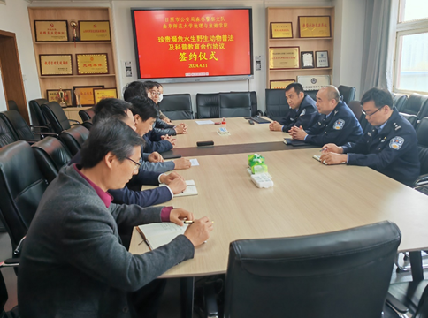 日照市森林公安局森林警察支队王常高局长在发言中强调,水生野生动物普法与科普教育对于提高公众的法律意识和科学素养具有重要意义。相信在双方的共同努力下,水生野生动物保护知识将得到更广泛的传播和普及,为构建人与自然和谐共生的美好家园做出积极贡献。曹剑锋政委表示公安局将充分利用自身的执法资源和社会管理优势,与高校紧密合作,共同开展形式多样的普法宣传和科普教育活动,提升公众对水生野生动物保护重要性的认识,营造全社会共同参与的良好氛围。
