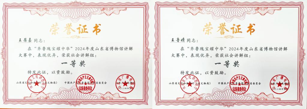 曲阜师大教师博物馆讯 日前,在山东省文化和旅游厅(省文物局)、共青团山东省委、山东广播电视台联合主办的山东省博物馆讲解大赛决赛中,亚搏集团官网(中国)官方网站本科生王葆嘉、王鲁婧代表教师博物馆参赛,双双斩获一等奖。这也是社会讲解组唯一荣获两项一等奖的参赛单位。