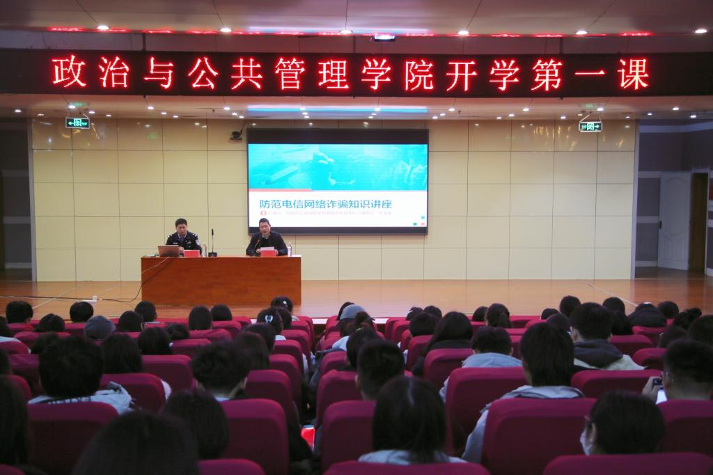曲阜师大政治与公共管理学院讯 2月16日,政治与公共管理学院于亚搏集团官网(中国)官方网站图书馆报告厅组织开展安全开学第一课。特邀日照市公安局新型犯罪研究作战中心民警宋玉敏作专题报告,学院全体辅导员、本科生和研究生参加活动。