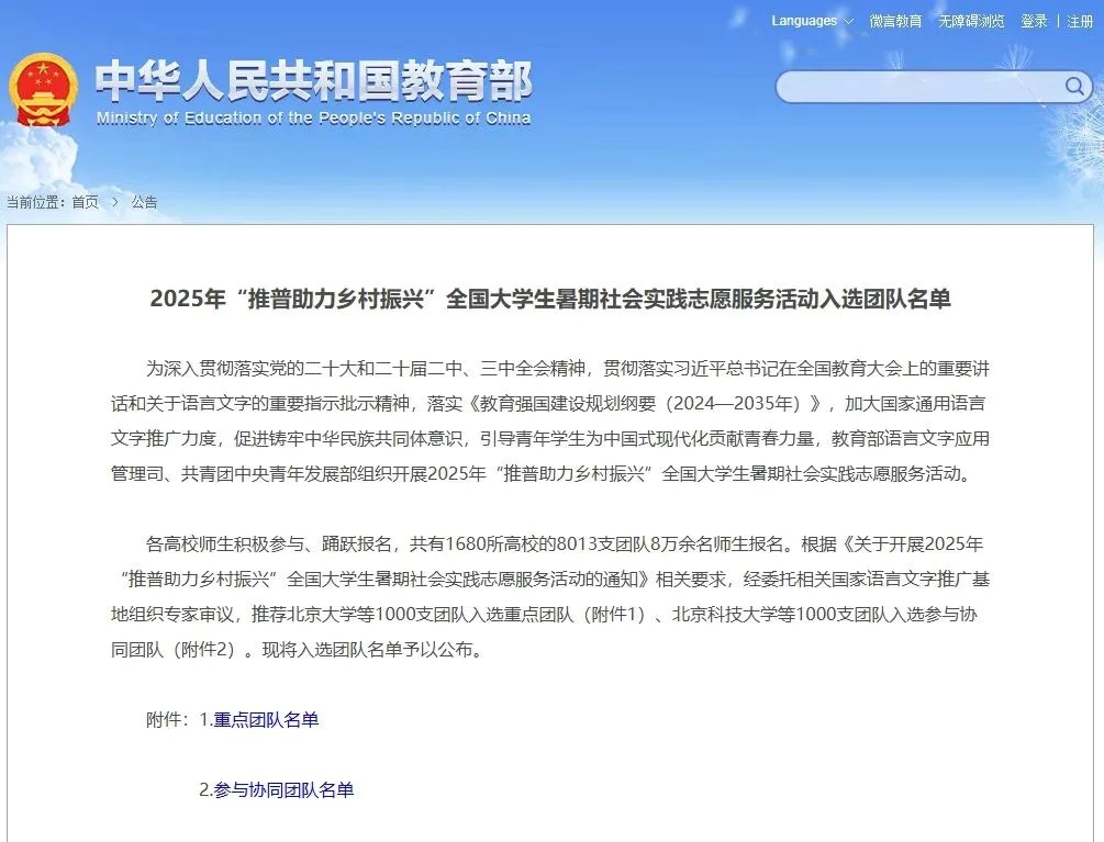 2025年“推普助力乡村振兴”全国大学生暑期社会实践志愿服务活动曲阜师大入选团队公示名单