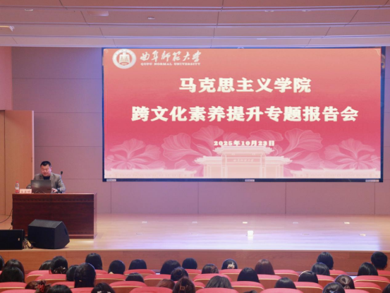 马克思主义学院讯10月23日,马克思主义学院举办跨文化素养提升专题报告会。特邀学校公共外语教学部副主任、教材建设委员会主任、山东省国外语言学学会大学外语教育专业委员会理事王显明副教授担任主讲。