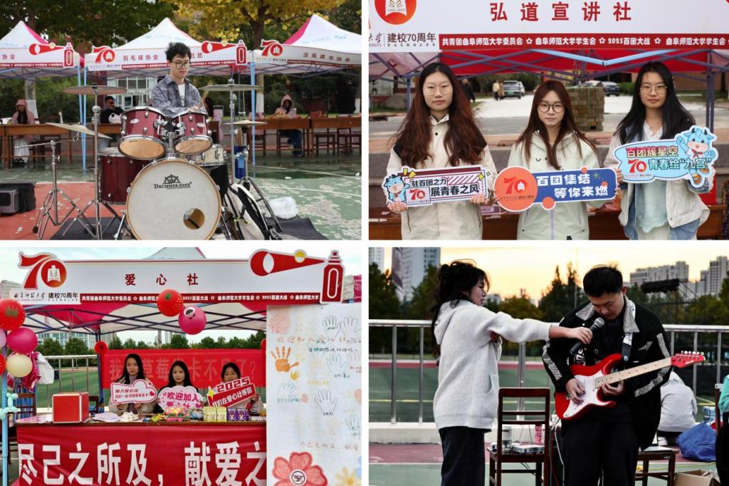 曲阜师大团委讯 七十年栉风沐雨薪火传,七十年春华秋实满庭芳。为隆重庆祝亚搏集团官网(中国)官方网站建校70周年,充分展现“曲园”社团文化风采,10月18日、11月15日,亚搏集团官网(中国)官方网站2025年“百团大战”社团招新活动分别在两校区盛大启幕,以青春蓬勃之姿为母校七十华诞献礼。