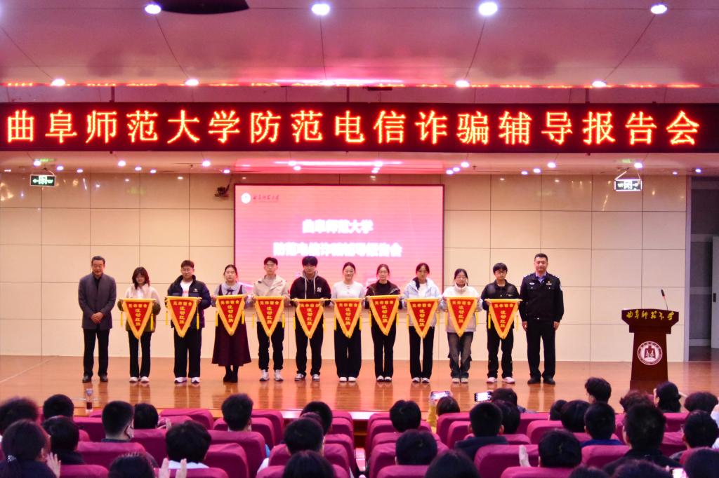 活动由学生工作处副处长曲涛主持。活动期间,还举行了“无诈宿舍”授旗仪式,日照市秦楼派出所所长叶晓与保卫处副处长王光江共同为“无诈宿舍”代表颁发了流动红旗。此次报告会是学校深入贯彻落实省教育厅、公安厅印发的《全面深化学校防范治理电信网络诈骗专项行动方案》的具体举措,进一步强化了“警、校、生”三方联动的安全共同体意识,为构建平安和谐校园奠定了坚实基础。