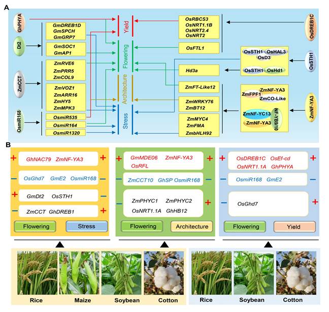 突破作物种植的纬度界限、减少区域环境和季节气候的限制都高度依赖于作物的早熟性。然而,作物早熟性与产量、抗性等性状呈负相关性,难以同时对早熟、抗病和产量等优良性状进行聚合,是当前作物育种技术面临的一项挑战。该研究系统探讨了单子叶和双子叶作物在驯化过程中适应栽培地区开花和成熟的作用机制,从作物育种视角阐述了如何利用开花和早熟性调节基因加速育种的技术策略。同时,探讨了利用或改进多效性基因实现作物早熟、多抗、高产和株型等优良农艺性状高效聚合的育种方案。此外,针对当前作物育种存在的障碍和局限性,研究提出了新形势下作物育种的方向和实现优良性状聚合必须解决的问题:利用基因编辑技术修饰特定基因或其靶基因启动子,以阻断与不利性状相关的调控通路,同时保留理想性状,继而将多效性基因转变为聚合多种优良性状的明星基因;优化作物遗传转化方法,建立高效、便捷、周期短、不受基因型影响的作物遗传转化体系;利用空间单细胞测序技术在单细胞分辨率下系统鉴定所需的优异基因;加强多效性基因的功能广谱性探究,以扩大其在农业生产中的应用价值;最后,鉴于不同农艺性状均受到由各种环境因子、植物激素和转录因子等构成的高度复杂网络系统的调控,应投入更多精力阐明不同农艺性状的调控机制及其关系,这将有利于发现新的调控因子或改进已知的优异基因型。